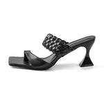 Diese stilvollen Sandaletten vereinen zeitlose Eleganz mit modernem Design. Der breite, geflochtene Riemen sorgt für einen raffinierten Look, während die quadratische Zehenpartie und der bequeme Absatz einen hohen Tragekomfort bieten. Perfekt für besondere Anlässe, Sommerabende oder elegante Alltagsoutfits.