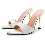 • Goldener Stiletto-Absatz – Stilvolle Metalloptik für einen eleganten Touch.