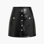 Callista | Eleganter Lackleder-Minirock mit Goldknöpfen und Ziertaschen