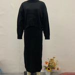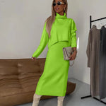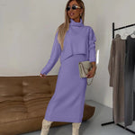 Damen Strick Zweiteiler mit Rollkragen Pullover und Midikleid