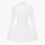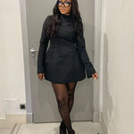 Dieses elegante Mini Kleid vereint zeitlose Eleganz mit moderner Raffinesse. Mit seinem hochgeschlossenen Ausschnitt, den langen Ärmeln und der figurbetonten Taille setzt es Ihre Silhouette perfekt in Szene. Das ausgestellte Rockteil sorgt für einen femininen Schwung und macht das Kleid zu einem Highlight für besondere Anlässe. Ob Dinner, Event oder Abendveranstaltung – dieses Kleid bietet Ihnen einen stilvollen Auftritt mit einem Hauch von Luxus.