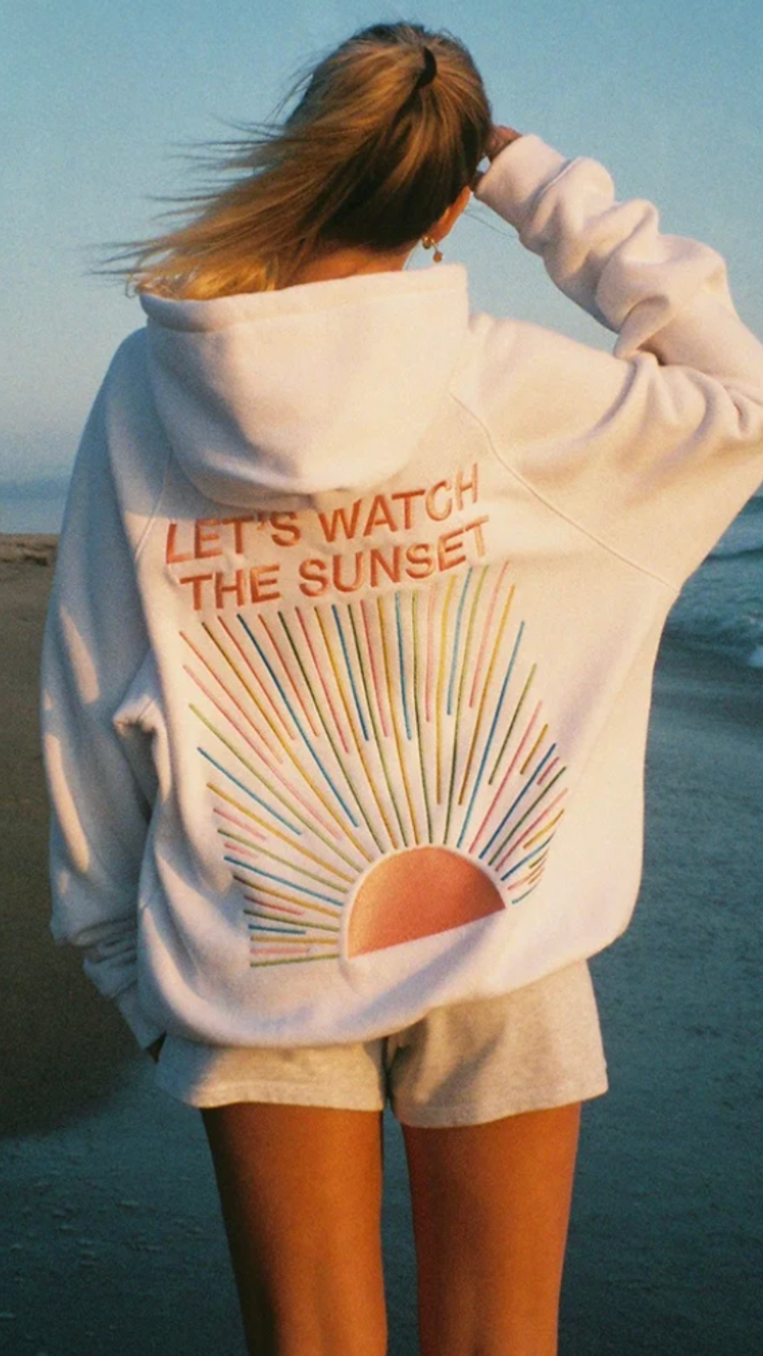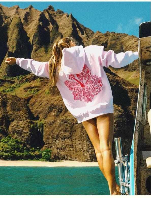 Ein trendiger Kapuzenpullover, der Strandfeeling und modischen Stil perfekt vereint – dein idealer Begleiter für entspannte Tage.