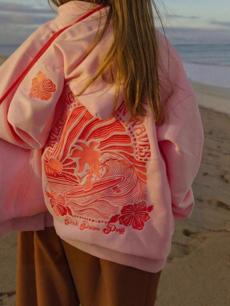 Surf Wave Kapuzenpullover mit Stickerei – Lässiger Hoodie im Strandstil