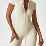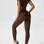 Dieser langärmelige Overall ist aus strapazierfähigem, nicht verformbarem Brokat mit Ammoniakwolken-Haptik und einer Vier-Wege-Stretchstruktur gefertigt, die hautfreundlich, weich und feuchtigkeitsableitend ist und Sie trocken hält. Stehkragen mit halbem Reißverschluss, eckiger Halsausschnitt, sehr leicht an- und auszuziehen. Die verlängerten Bündchen sind in alle Richtungen rutschfest, um Ihre Hände zu schützen. Einteilige schmale Passform, passt sich perfekt an Ihren Körper an und bringt Ihre schönen Kurven zur Geltung. Dieser Jumpsuit ist dick genug, blickdicht und sehr stützend, perfekt für Freizeit, Sport, Yoga, Fitness und alle Arten von Workouts.