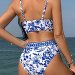 High-Waist Bikini mit floralem Muster & V-Ausschnitt