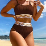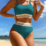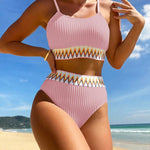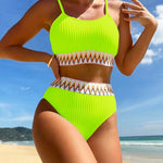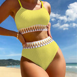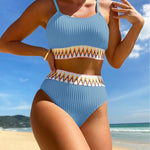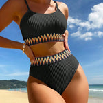 Schwarzer High-Waist Bikini mit Chevron-Detail – 2-teiliges Set mit Spaghettiträgern & Strukturstoff