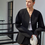 • Asymmetrische Knopfdetails: Verleihen dem klassischen Blazer-Design eine einzigartige, zeitgemäße Note.