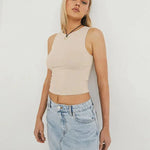 Dieses Nadja Passendes ärmelloses Crop-Top ist das perfekte Basic für jede Garderobe! Mit seinem schlichten, figurbetonten Schnitt und dem weichen, elastischen Material bietet es einen hohen Tragekomfort und passt sich jeder Bewegung an. Der hochgeschlossene Rundhalsausschnitt verleiht dem Top eine elegante Note, während die verkürzte Länge ideal ist, um es mit High-Waist-Jeans, Röcken oder Shorts zu kombinieren. Ob für den Alltag, das Fitnessstudio oder ein Abend-Outfit – dieses Crop-Top ist ein echter Allrounder!