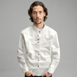 Elegantes Herrenhemd mit Stehkragen und modischer Knopfleiste – Stilvolle Langarmbluse für moderne Outfits