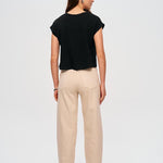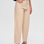 • Modische Ballonform: Der trendige Schnitt mit einem höheren Bund und abfallenden Beinen sorgt für eine moderne, feminine Silhouette, die gleichzeitig lässig und chic wirkt.