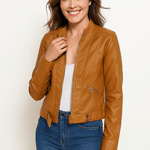 Diese taillierte Bikerjacke bringt Eleganz und Coolness in Einklang. Mit klaren Linien, einem femininen Schnitt und stilvollen Details wird sie zum perfekten Begleiter für vielseitige Outfits. Ob leger kombiniert zur Jeans oder stilvoll zu eleganten Looks getragen – diese Jacke verleiht jedem Auftritt einen modischen Akzent. Der figurbetonte Schnitt unterstreicht die Silhouette und macht sie zu einem zeitlosen Favoriten für modebewusste Frauen.