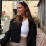 Verleihe deinem Outfit mit dieser modernen Kurzjacke einen eleganten, trendbewussten Touch – ideal für jede Gelegenheit!