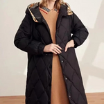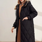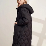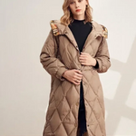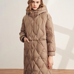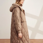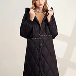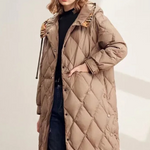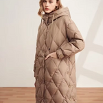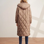 Emmie | Diamant gesteppt langer Damenmantel mit Kapuze