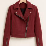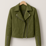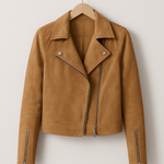 Ein modisches Must-have – die Vintage Bikerjacke aus Wildlederimitat bringt zeitlose Eleganz und moderne Coolness in jedes Outfit.