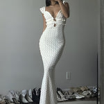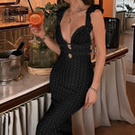 Erleben Sie Eleganz und Sinnlichkeit mit unserem rückenfreien Kleid, gefertigt aus hochwertigem, leicht elastischem Polyester-Elasthan-Gewebe. Das ärmellose Design mit verführerischem Dekolleté und semi-transparenten Details macht es zur perfekten Wahl für Freizeitaktivitäten, Hochzeiten oder entspannte Stunden zu Hause.