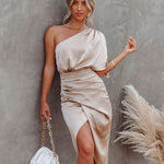Wilhelmina | Elegantes One-Shoulder Satin-Kleid mit Drapierung