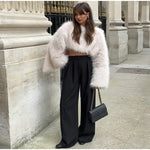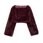 Cropped Kunstfell Pullover mit weiten Ärmeln für Damen