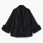 Damen Mantel mit Kunstfellbesatz – Eleganter Winter Kurzmantel