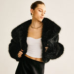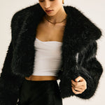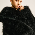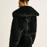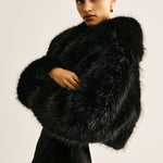 Diese schwarze Kunstfelljacke ist das ultimative Statement-Piece für stilbewusste Trendsetterinnen. Mit ihrem fluffigen, voluminösen Look und dem edlen Schnitt verleiht sie jedem Outfit einen Hauch von Luxus und Eleganz.