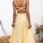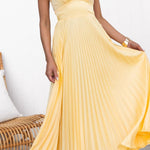 Elegantes Plisseekleid in Sonnengelb – Ärmellos mit V-Ausschnitt & fließender Silhouette