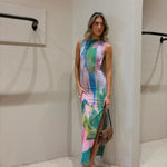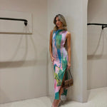 Das Hannelore Maxikleid ist ein luxuriöses Statement-Stück für modebewusste Frauen, die Eleganz und Raffinesse schätzen. Mit seinem kunstvollen Farbverlauf und dem schmeichelnden Schnitt zaubert es eine feminine Silhouette, während der verführerische offene Rücken das Highlight dieses Designs bildet. Die seitlichen Schlitze verleihen dem Kleid eine luftige Leichtigkeit und setzen Ihre Beine stilvoll in Szene – ideal für besondere Anlässe, Urlaube oder glamouröse Sommerpartys.