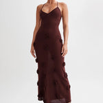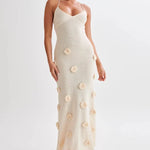 Maxikleid mit Spaghettiträgern und 3D-Blumenapplikationen für Damen