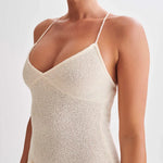 Dieses feminine Maxikleid ist die perfekte Verbindung aus Romantik und Eleganz. Die zarten Spaghettiträger betonen Schultern und Dekolleté, während das enganliegende, fließende Material die Figur elegant umschmeichelt. Ein besonderes Highlight sind die applizierten 3D-Rosen, die dem Kleid eine stilvolle Tiefe und einen luxuriösen Look verleihen.