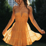 Das Nele Babydoll-Kleid strahlt pure Sommerlaune aus! Mit seinem leichten, fließenden Stoff und den verspielten Stufen-Volants ist es die ideale Wahl für warme Tage. Der tiefe V-Ausschnitt mit zarten Trägern betont das Dekolleté, während der lockere Schnitt für höchsten Tragekomfort sorgt. Ob am Strand, beim Stadtbummel oder auf Sommerfesten – dieses Kleid ist ein Must-have für jede stilbewusste Frau.