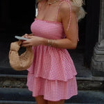 Wibke | Charmantes rosa-weiß kariertes Sommerkleid