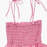 Fügen Sie Ihrer Garderobe einen Hauch von Sommerfrische hinzu mit diesem Wibke Charmantes rosa-weiß karierten Sommerkleid. Mit einem elastischen Smok-Oberteil für eine perfekte Passform und verstellbaren Spaghettiträgern für optimalen Komfort vereint dieses Kleid mühelos Stil und Funktionalität. Der doppellagige Rüschenrock verleiht eine verspielte Note, während das leichte Material es ideal für warme Tage macht. Perfekt für Strandtage, Gartenpartys oder entspannte Zusammenkünfte.