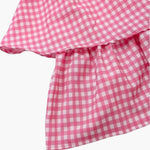 • Stilvolles Design : Pink-weiß kariertes Muster mit femininen Rüschen-Details.