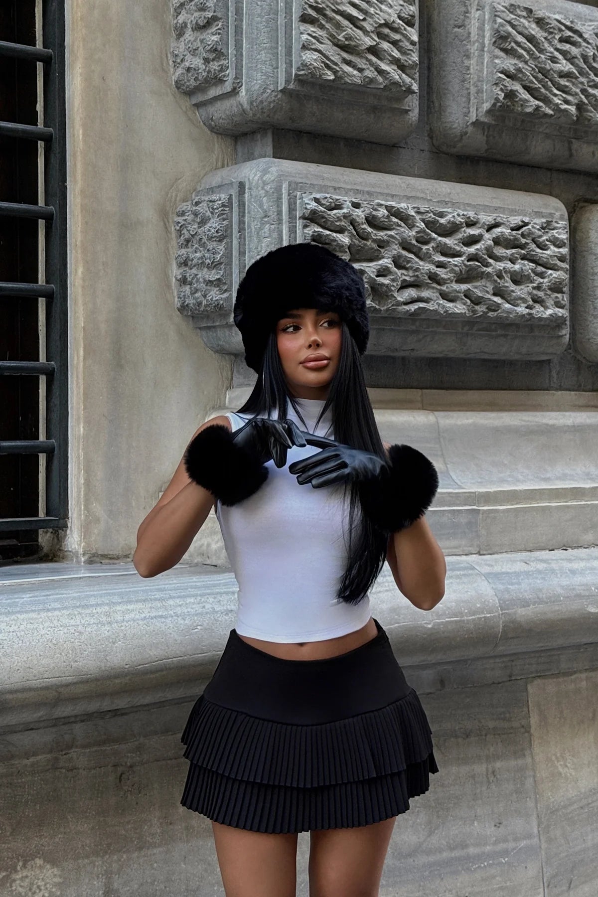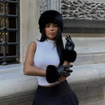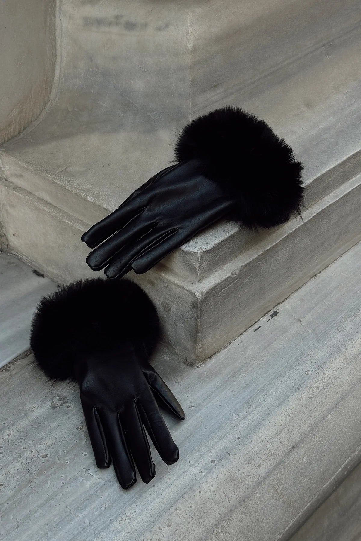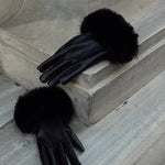 Emma | Flauschige Lederhandschuhe in Schwarz für Damen
