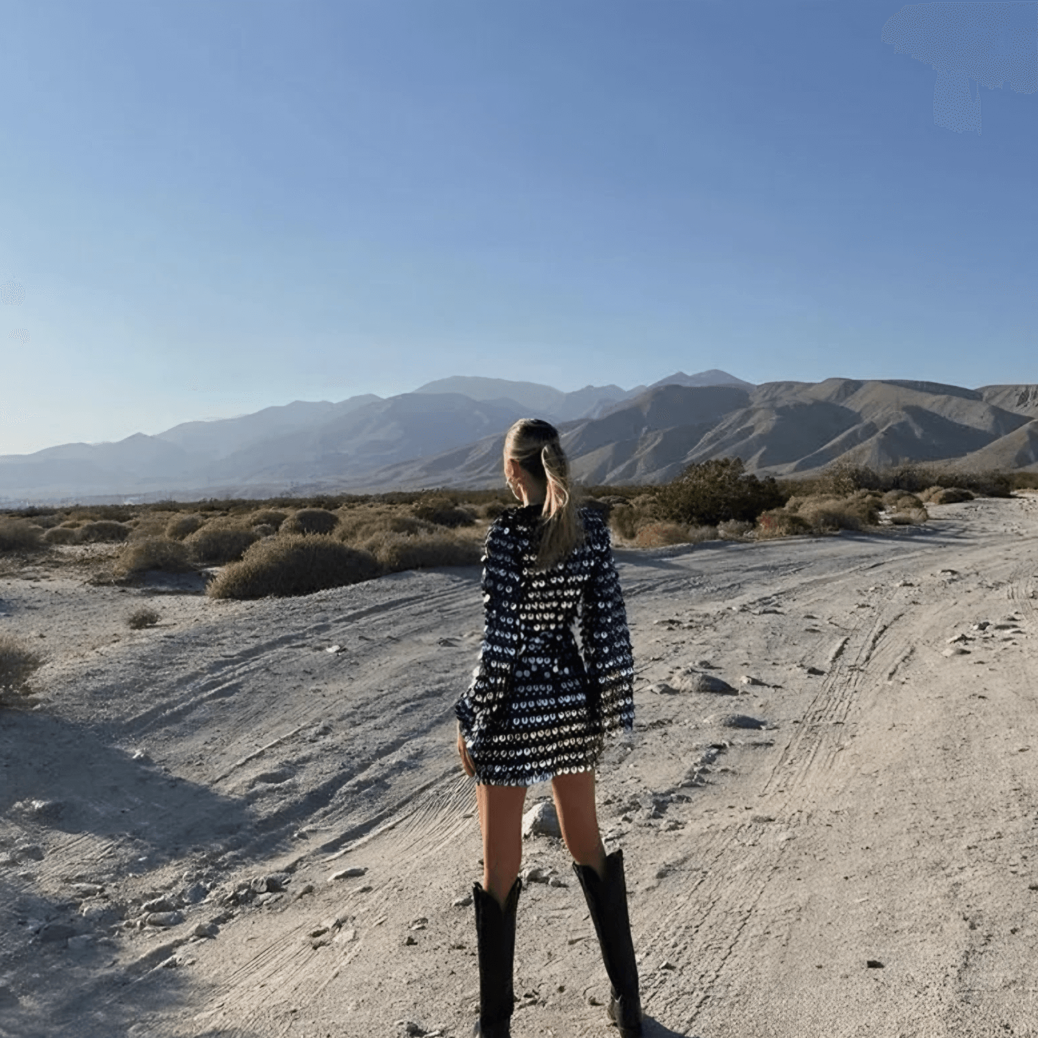 Das Beatrice Pailletten-Minikleid ist ein absolutes Statement-Piece für glamouröse Auftritte und zieht mit seinem glänzenden Pailletten-Design alle Blicke auf sich. Die engen, funkelnden Pailletten sorgen für eine luxuriöse, auffällige Optik, während der figurbetonte Schnitt mit Taillen-Cut-Out und Ring-Detail die Silhouette perfekt betont. Die langen Ärmel verleihen dem Kleid eine elegante Note, während der Mini-Schnitt für einen modernen, verführerischen Touch sorgt. Ideal für exklusive Partys, besondere Events oder als Hingucker auf der Tanzfläche.