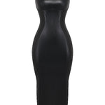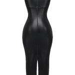 1. Edle Lederoptik: Das glänzende Finish verleiht dem Kleid eine luxuriöse und modische Ausstrahlung.