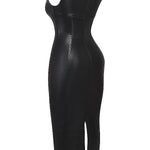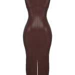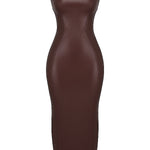 Dieses figurbetonte braune Lederkleid ist die perfekte Wahl für Frauen, die einen modernen, stilvollen und selbstbewussten Look suchen. Mit seinem ärmellosen Design, einem eleganten Rundhalsausschnitt und der glänzenden Lederoptik ist es ideal für Cocktailpartys, Abendveranstaltungen und besondere Anlässe. Der eng anliegende Schnitt betont die Silhouette und unterstreicht Ihre feminine Ausstrahlung.