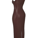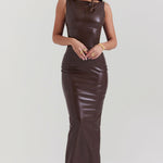Suchen Sie ein Kleid, das modernen Stil und klassische Eleganz vereint? Dieses braune Lederkleid ist die perfekte Wahl für einen glamourösen und stilvollen Auftritt!