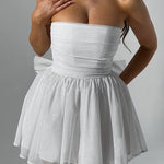 Das Kate Mini-Kleid in schimmerndem Ivory ist die perfekte Wahl für alle, die mit ihrem Outfit einen glamourösen Auftritt hinlegen möchten. Mit seinem schulterfreien Design, der figurbetonten Passform und dem glitzernden, luftigen Rock strahlt dieses Kleid Eleganz und Weiblichkeit aus. Es ist die ideale Wahl für Partys, Hochzeiten oder andere besondere Anlässe, bei denen Sie im Mittelpunkt stehen möchten.