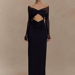 Schulterfreies Maxikleid mit Cut-Out und langen Ärmeln für Damen