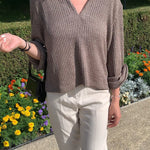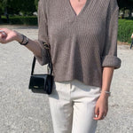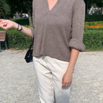 Ein vielseitiger und gemütlicher Strickpullover mit weichem, geripptem Design und stilvollem V-Ausschnitt. Der breite Kragen verleiht dem Look eine moderne Note, während die langen Ärmel für zusätzlichen Komfort sorgen. Ein idealer Begleiter für den Alltag oder entspannte Anlässe.