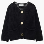 Verleihen Sie Ihrer Garderobe mit dieser Lya Grobstrick-Strickjacke einen mutigen Akzent. Die auffälligen Statement-Knöpfe, das strukturierte Design, der lockere Schnitt und die praktischen Vordertaschen kombinieren Komfort mit auffälligem Stil. Perfekt zum Layern über lässige oder semi-formelle Outfits – ein Must-have für kühlere Tage.