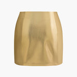 Freyja | Glänzender Gold Metallic-Minirock mit figurbetonter Passform und High-Waist-Schnitt