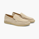 Der Luke Loafer steht für zeitlose Eleganz und sommerliche Leichtigkeit. Aus hochwertigem, naturfarbenem Wildleder gefertigt, überzeugt dieser Herren-Slipper mit seinem klaren Design und einem angenehm weichen Tragegefühl. Der klassische Mokassin-Stil mit dezenten Nähten sorgt für eine stilvolle Note, während die flache, flexible Sohle optimalen Komfort im Alltag bietet – ob beim Stadtbummel, im Büro oder auf Reisen.