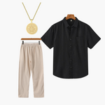 Adam | 3-teiliges Sommer-Outfit mit Kurzarmhemd, Leinenhose & Goldkette