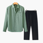 Christopher | Lange Ärmel Hemd & Hose Zweiteiliges Leinen-Set Herren-Sommer-Outfit