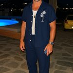 Herren Resort-Set mit Palmen-Stickerei | Hemd & Lange Hose