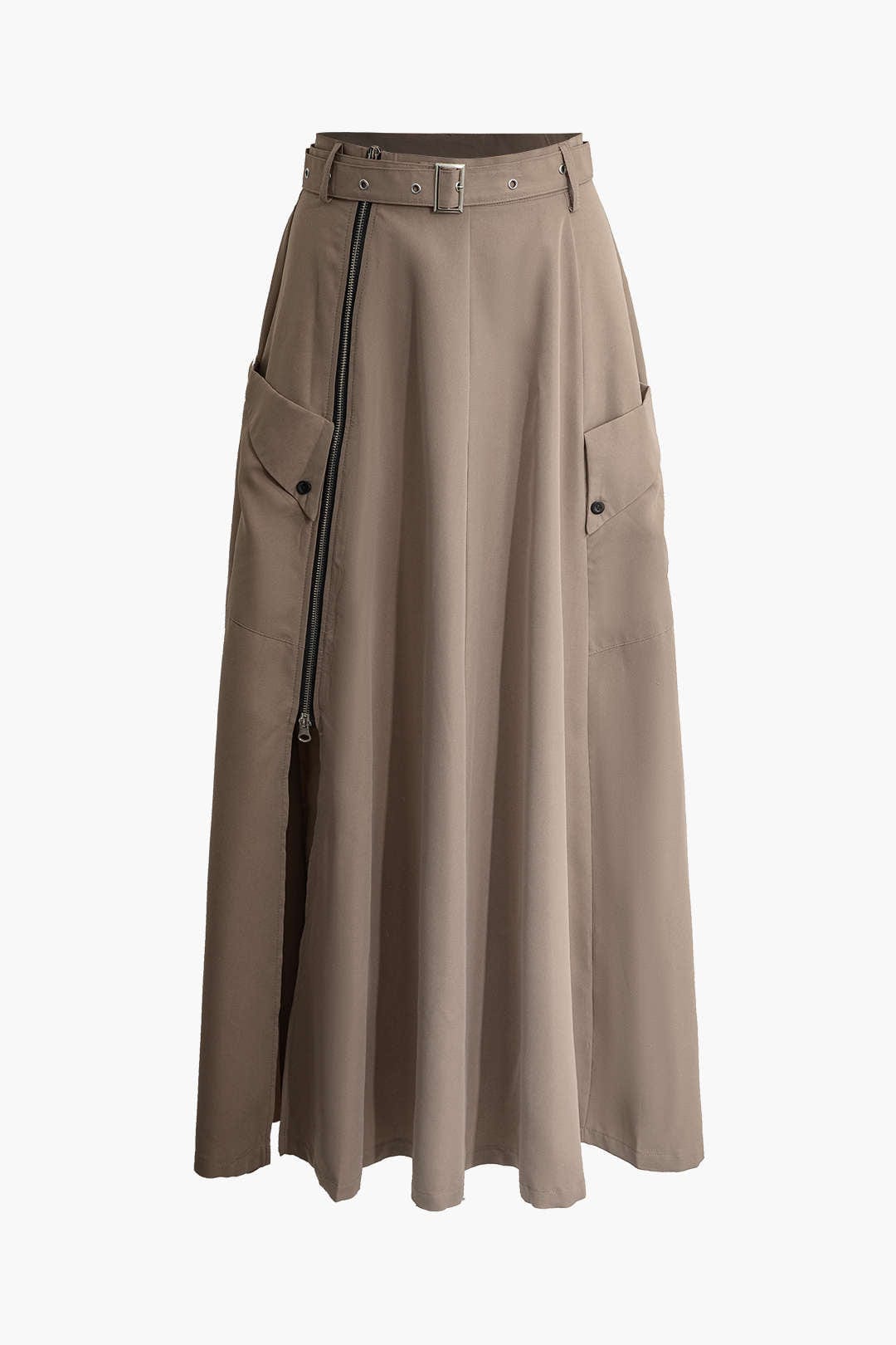 - Fließender Maxirock mit Utility-Details – Elegante Lässigkeit trifft auf funktionale Taschen und Zierreißverschluss.