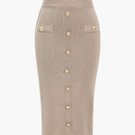 Das Charlotte Strick-Set kombiniert Eleganz mit gemütlichem Komfort. Der stilvolle Cardigan mit V-Ausschnitt und Knopfverschluss verleiht dem Look eine feminine Note, während der figurbetonte Bleistiftrock die Silhouette schmeichelhaft betont. Die goldfarbenen Knöpfe und dekorativen Taschen verleihen dem Set eine edle Ausstrahlung. Perfekt für stilvolle Alltagslooks oder schicke Office-Outfits.