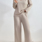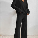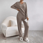 Damen Zweiteiler Strick Set mit V-Ausschnitt und weitem Schnitt