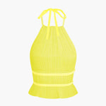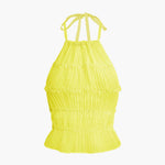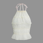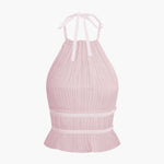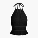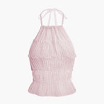 - Verspieltes Plissee-Top – Zarte Rüschen und Bindebänder für eine feminine Silhouette.