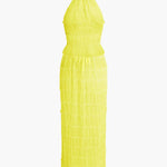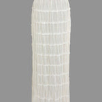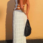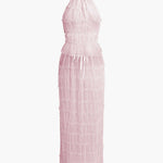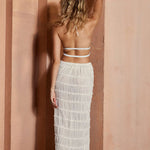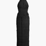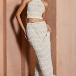 Das Elise Zweiteiler-Set vereint verspielte Leichtigkeit mit eleganter Raffinesse. Das luftige Plissee-Top mit zarten Bindebändern am Hals sorgt für eine feminine Ausstrahlung, während der fließende Maxirock mit elastischem Bund eine schmeichelhafte Passform bietet. Die feinen Rüschen und die durchdachte Faltenstruktur verleihen dem Set eine romantische Note, perfekt für Sommerabende, Strandspaziergänge oder elegante Gartenpartys.